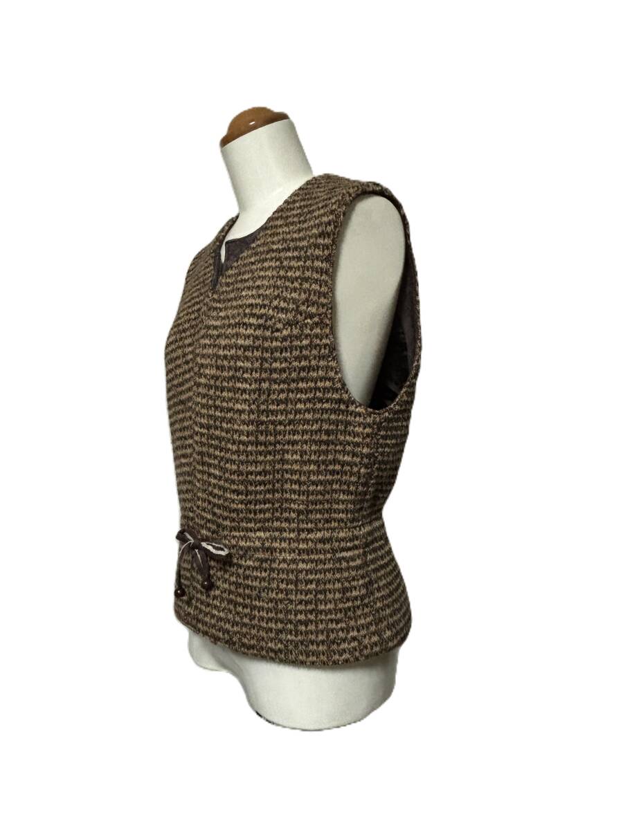 レリアン Leilian ツイード生地のベスト ジレ ウール×キャメル×アンゴラ 革ひも 9 ブラウン系 レディース女性用 布地フランス製 qkq 收藏