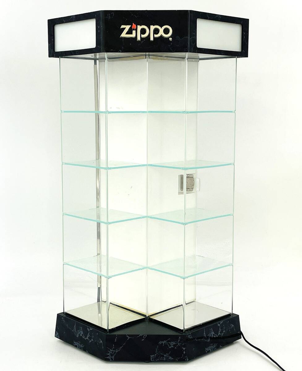 当時物 zippo ディスプレイケース 海外店舗販促品 正規店ディスプレイ 大理石調 アクリルガラス 鍵 ステッカー付き 現状品 收藏