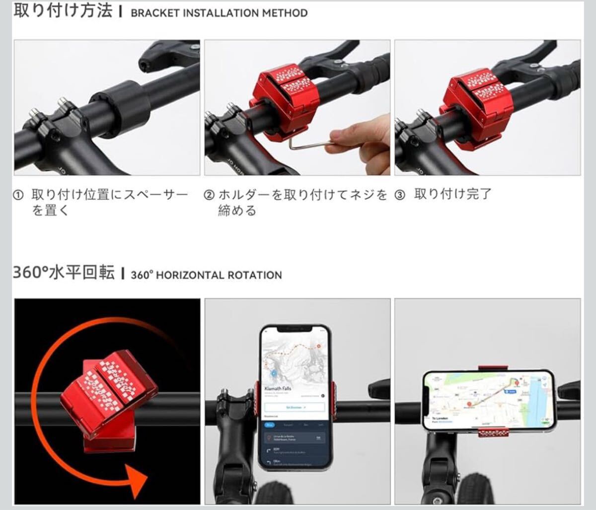 自転車 スマホホルダー バイク スマホホルダー 携帯ホルダー ミニマルデザイン アルミ製 防振 耐久強度 ナビ固定 取り付け簡単 レッド 收藏