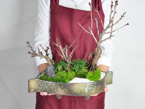 盆栽 桜 桜の豪華寄植え 落ち葉型 信楽焼鉢 12号 大型盆栽 旭山桜 お花見 お祝い プレゼント ギフト 贈り物 サクラ 盆栽妙 收藏