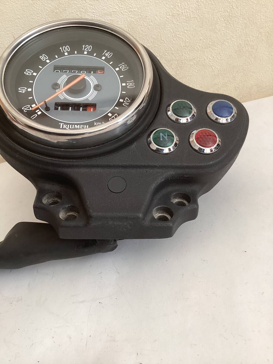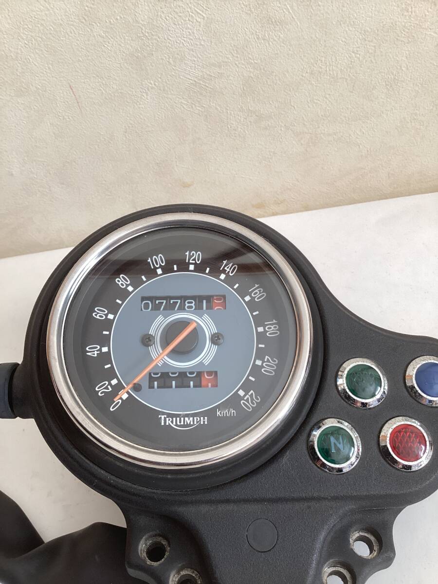 | トライアンフ ボンネビル 純正メーター 7781km こちらの商品は実動車より取り外したものとなります。 本体にスレ、傷等ありますが、比較的綺麗かと思います。サビありません。画像でご確認ください。 配線のカプラー部分も割れ等ございませんのでそのまま使用いただけます。 純正戻しや、部品ストック等にいかがでしょう。 | |||||||||