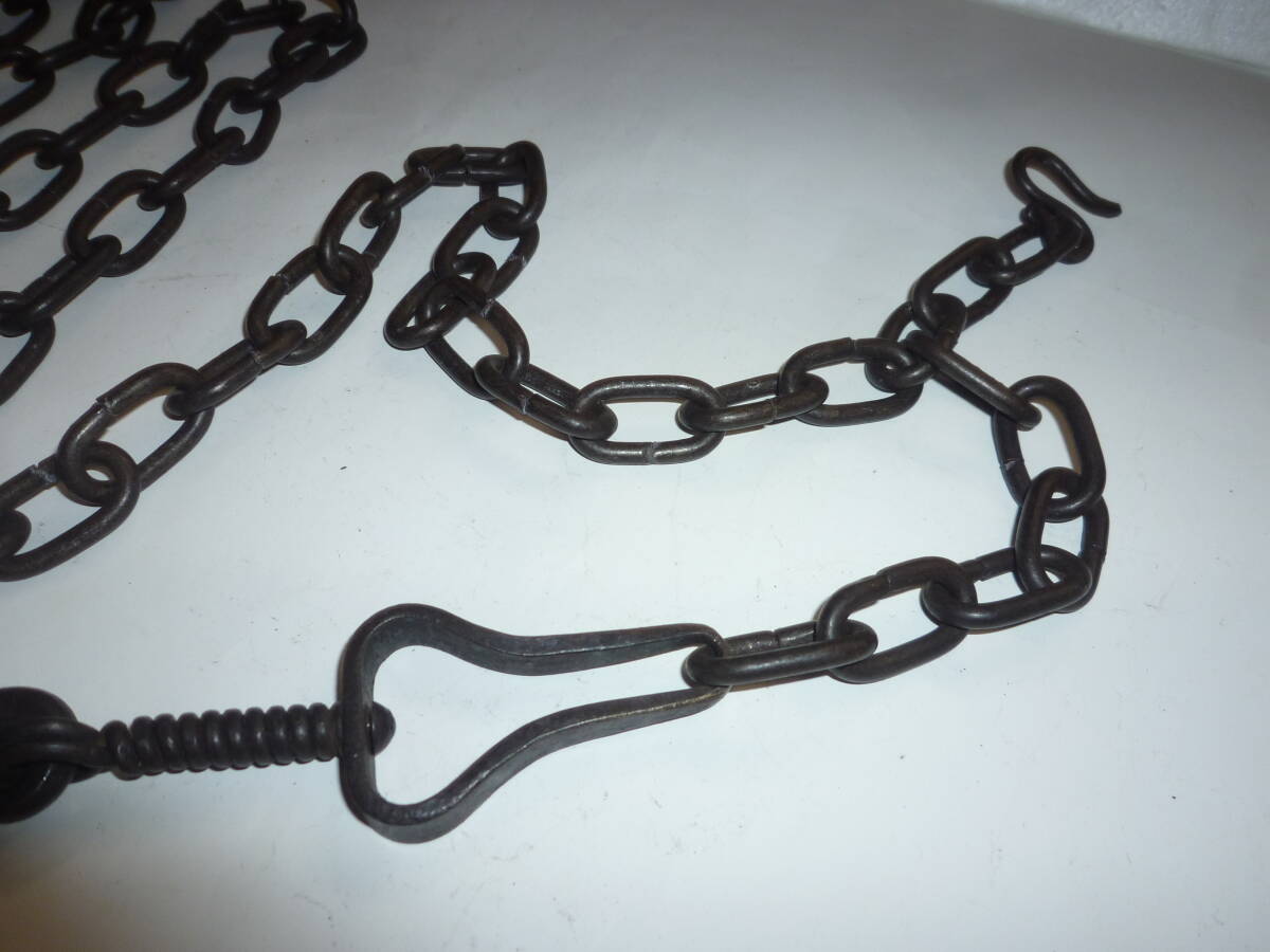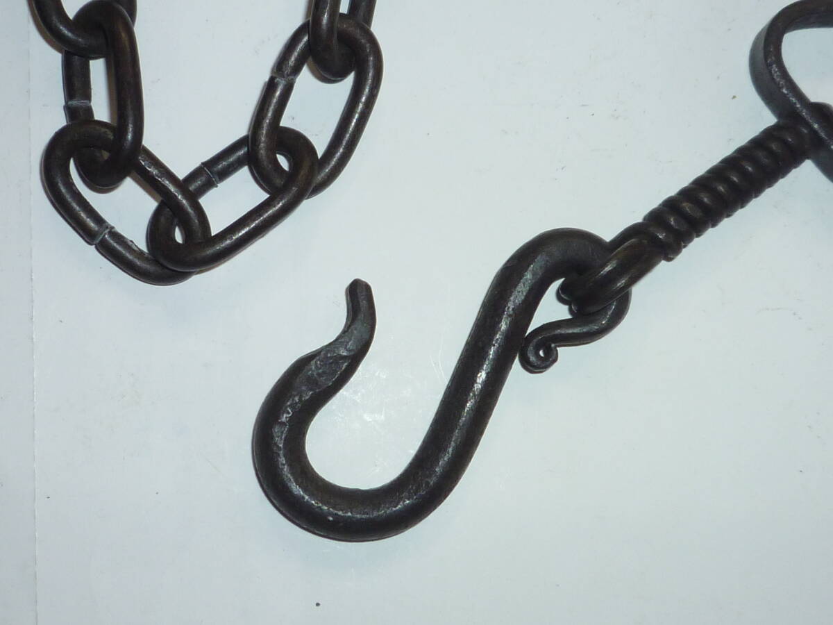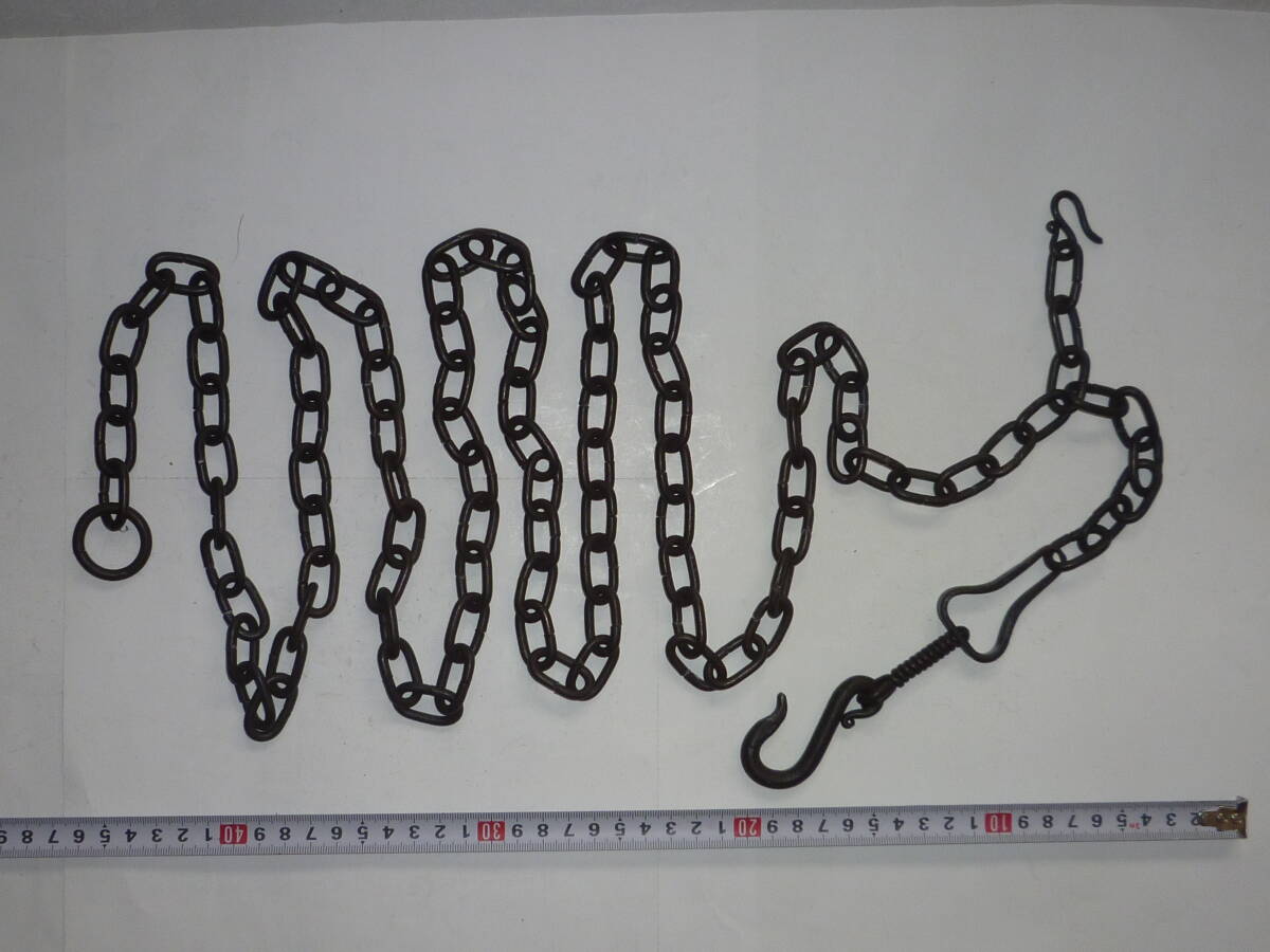 古鉄 時代 釣り鎖 吊り金具 茶道具 華道具 煎茶道具 花鎖 吊り釜 釜鎖 全長220㎝ 釣鎖 華鎖 / 茶釜 鉄瓶 瓶掛け 火鉢 收藏