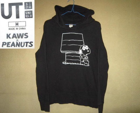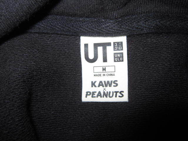 超レア! UT KAWS x PEANUTS コラボ カウズ ピーナッツ スヌーピー デカロゴ スウェット パーカー 黒 M ユニクロ 收藏