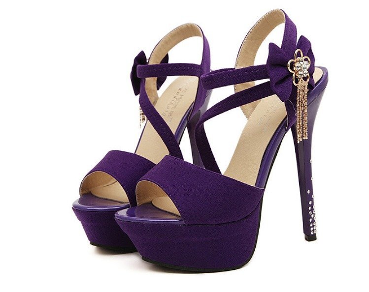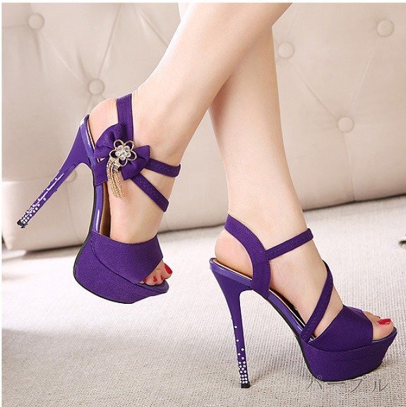 【高品質】全4色 ハイヒールシューズ オフィス ピンヒール リボン付き sweet系 36 パープル 收藏