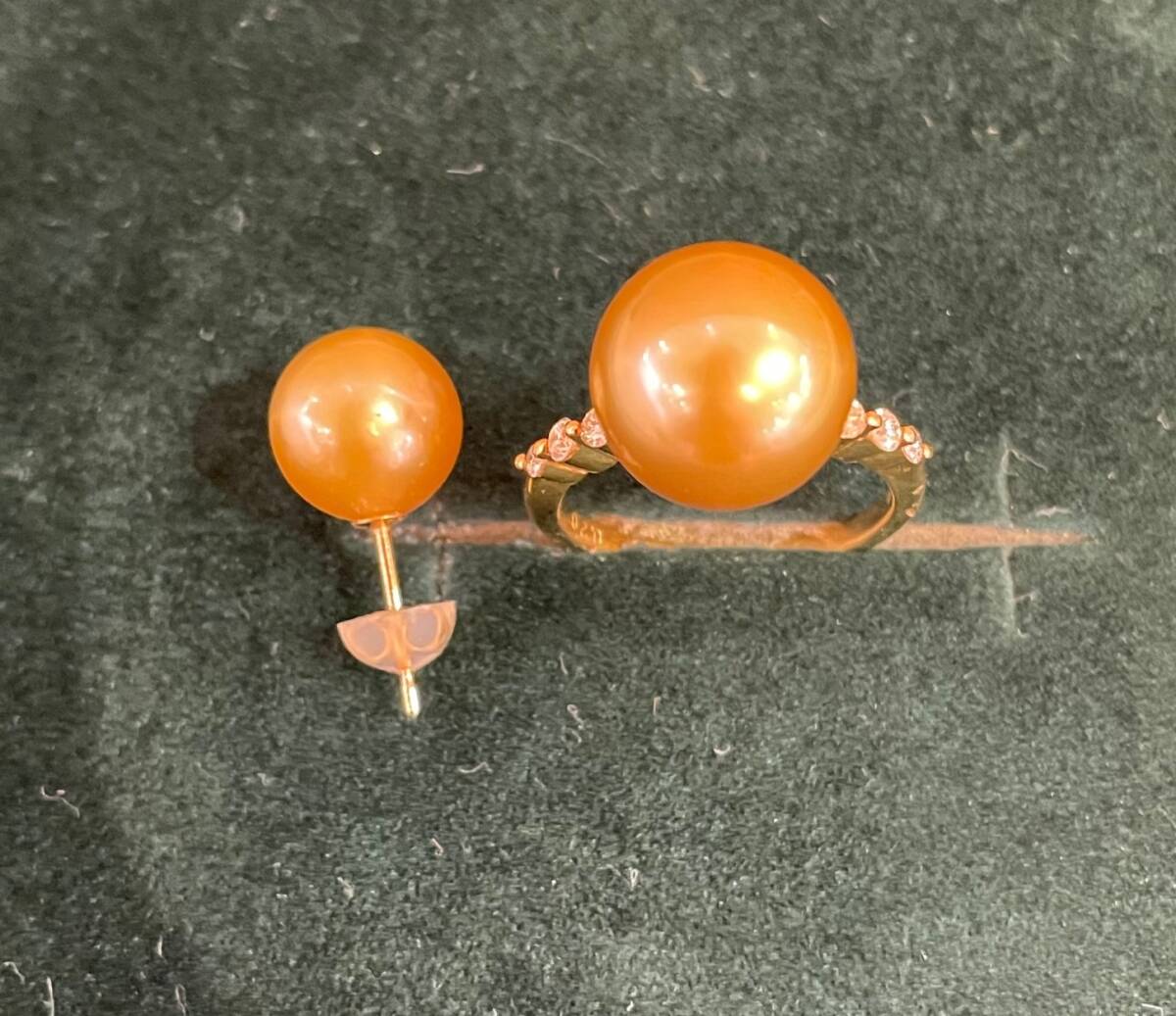 シロチョウ真珠 925刻印ゴールデンパールネックレス K18刻印リング ピアスセット※ピアス一個欠品 日本宝石鑑別センター 鑑別書付き 收藏
