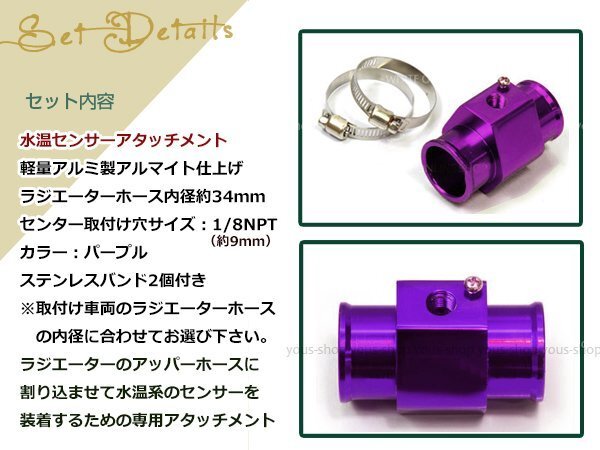マークⅡ JZX90 水温センサー アタッチメント オートゲージ アダプター 1/8NPT 34㎜ 34Φ パープル 軽量アルミ製 アルマイト仕上げ 收藏
