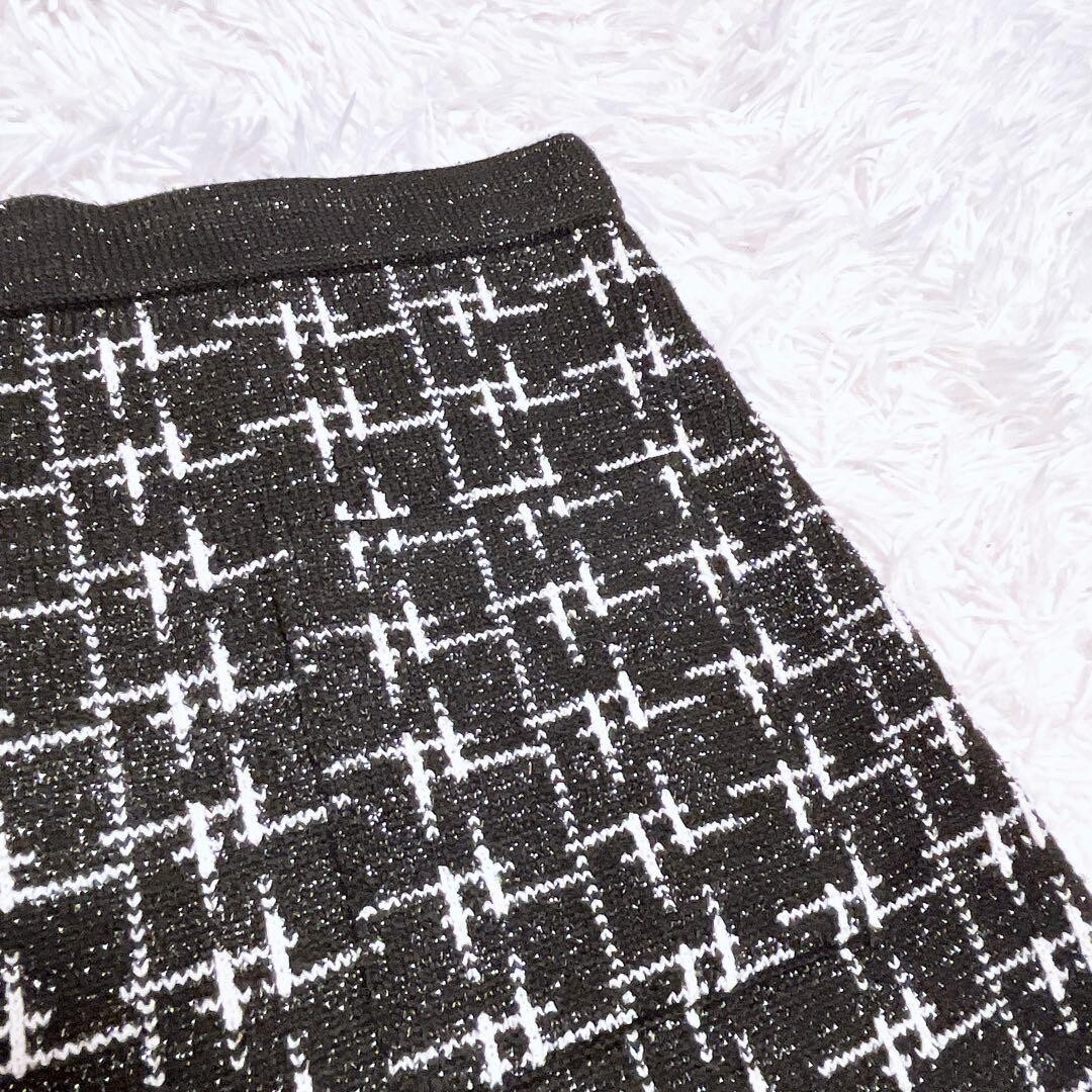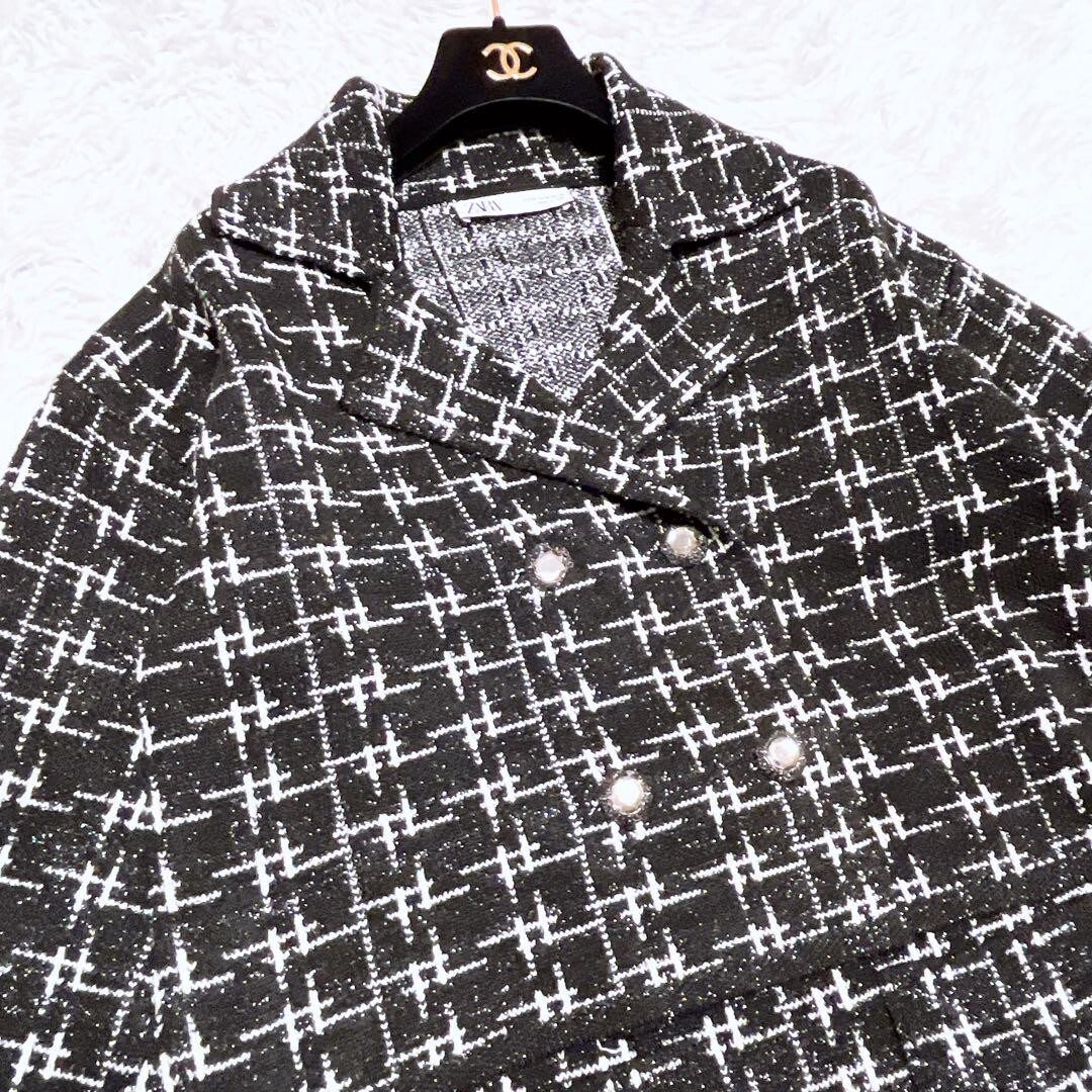 ZARA ニット ツイード チェック セットアップ ビジュー ボタン 白 黒 M 收藏