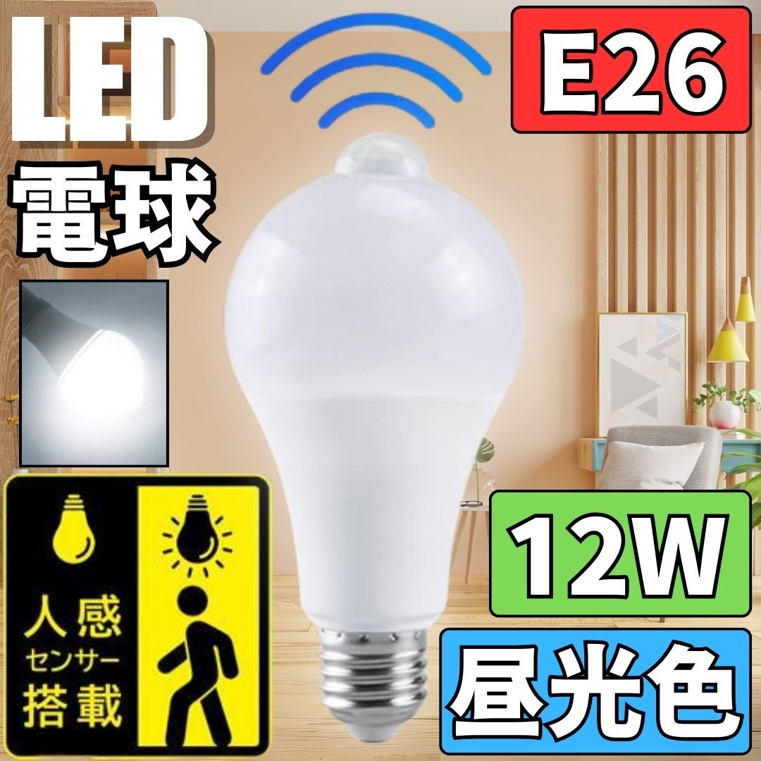 LED電球 人感明暗センサー E26 12W 6500K 1個 昼光色 ホワイト 昼白色 80W相当 自動点灯消灯 節電ライト 省エネエコ トイレ 廊下バス玄関洗 收藏