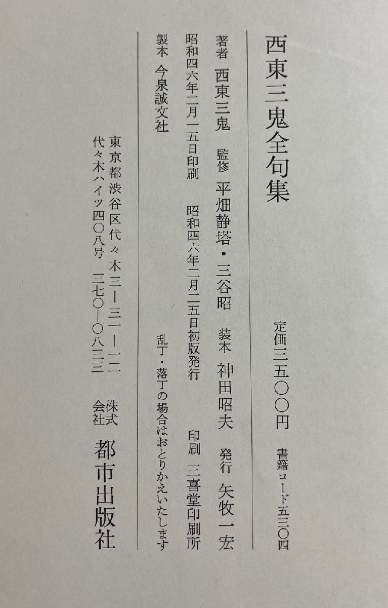 | 商品名 | 西東 三鬼 西東三鬼全句集 昭和46年発行 初版 今泉誠文社 帯付き 俳句集 |