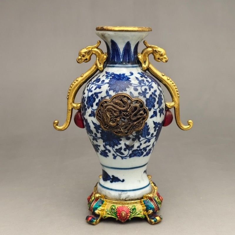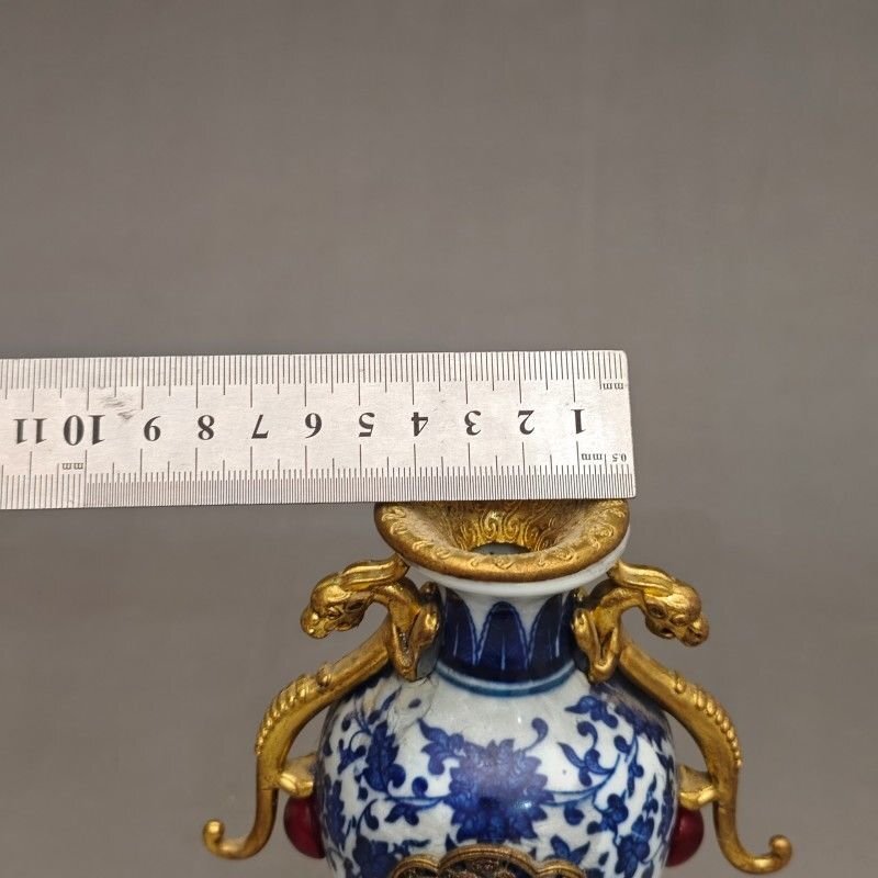 花瓶 磁器 陶磁 青花 青花銅嵌花瓶 セラミック 工芸品 美術品 置物 鑑賞 簡易包装 ZH1820 收藏
