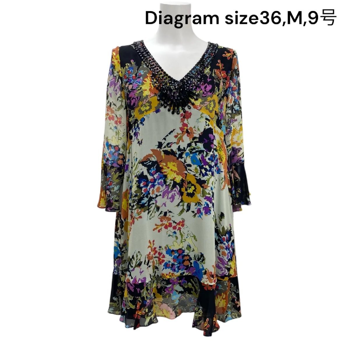 ダイアグラム Diagram ワンピース 長袖 膝丈 シアー 花柄 シルク 装飾 36,M,9号 レディース S5Q752 收藏