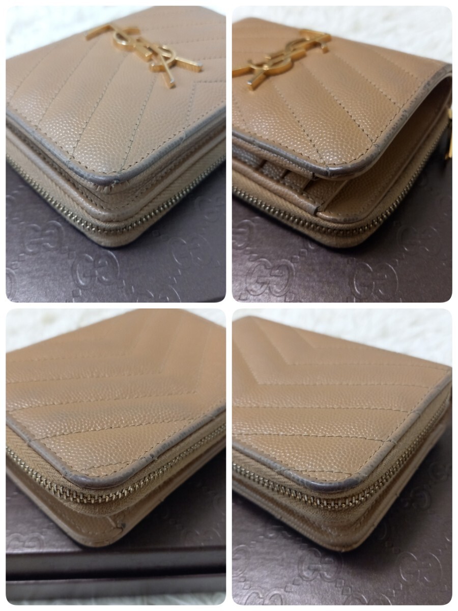 【良品】 SAINT LAURENT PARIS サンローラン パリ イヴサンローラン カサンドラ YSL 二つ折り財布 キャビアスキン コンパクトウォレット 收藏