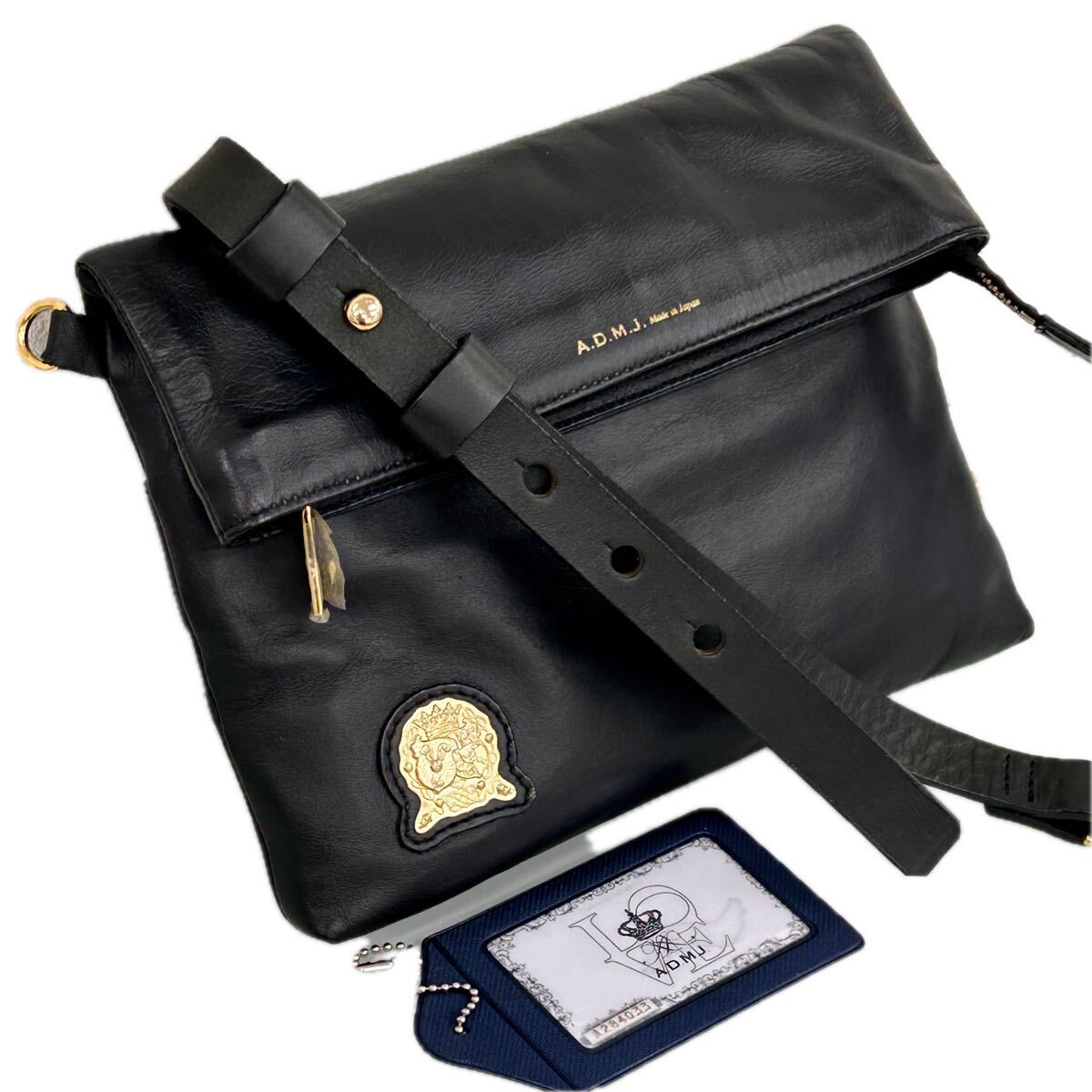 【未使用に近い】 A.D.M.J エーディーエムジェイ ショルダーバッグ クラッチバッグ ブラック レザー 横25×高さ17×幅1 收藏