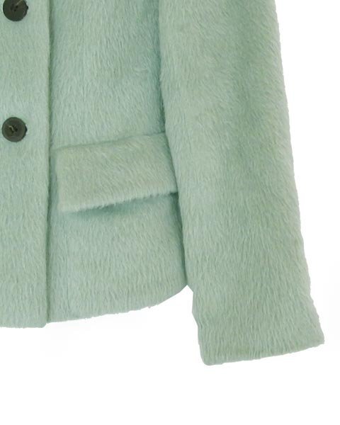 | 毛足のあるふわモコジャケット。落ち着いたグリーンで秋冬の差し色として活躍してくれます。スカートにもパンツにもあわせて頂けるデザインです。 |