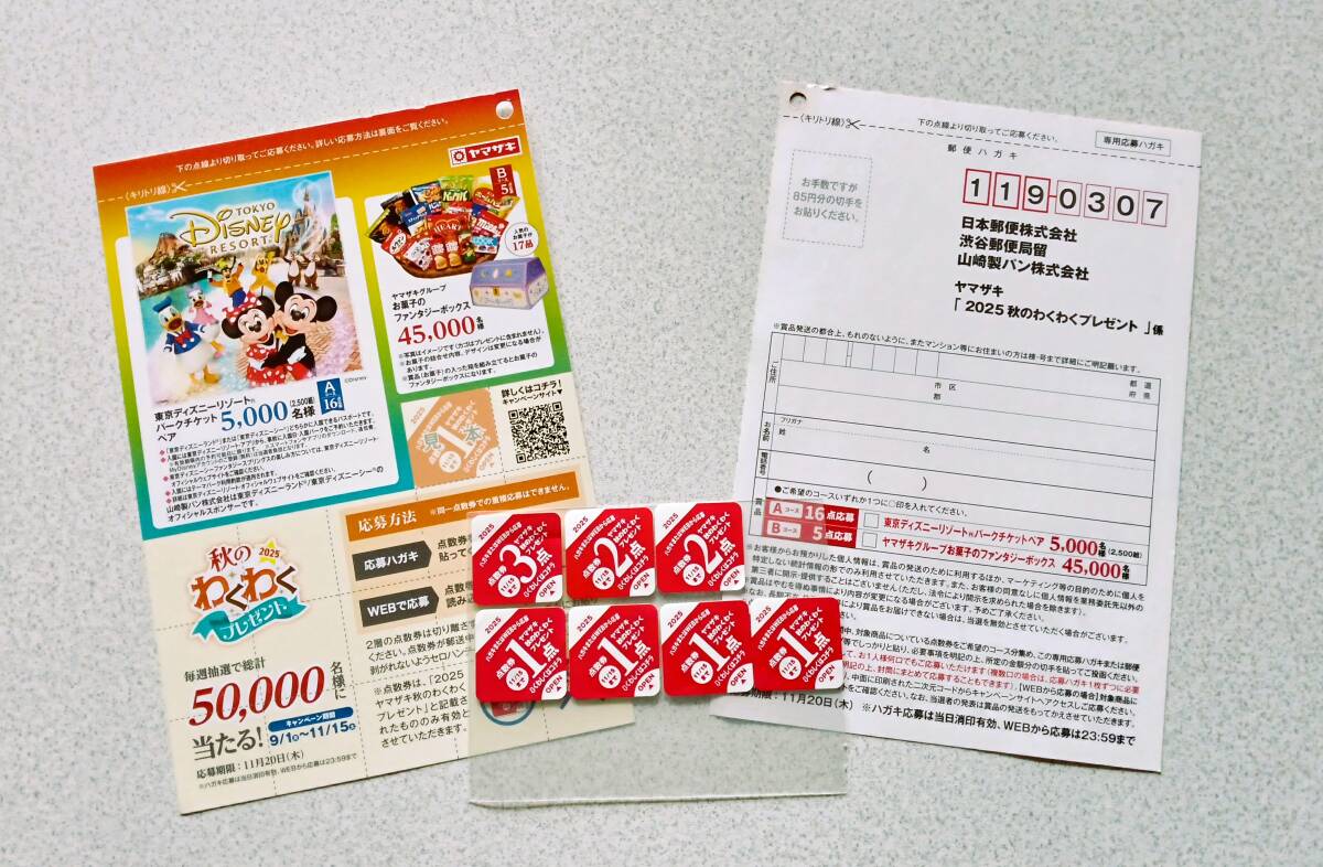 懸賞応募不足分などに『ヤマザキ2025秋のわくわくプレゼント☆東京ディズニーリゾート ペア パークチケットなどが当たる!』11点分 收藏