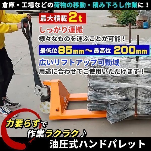 ハンドリフト 低床 2t 油圧式 手押し 台車 キャスター ハンドパレット リフトアップ ダブルローラー 運搬 荷物 積み下ろし 收藏