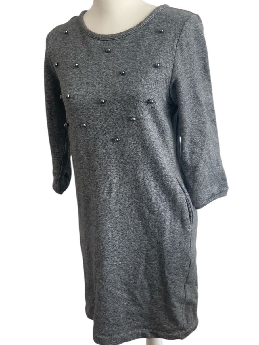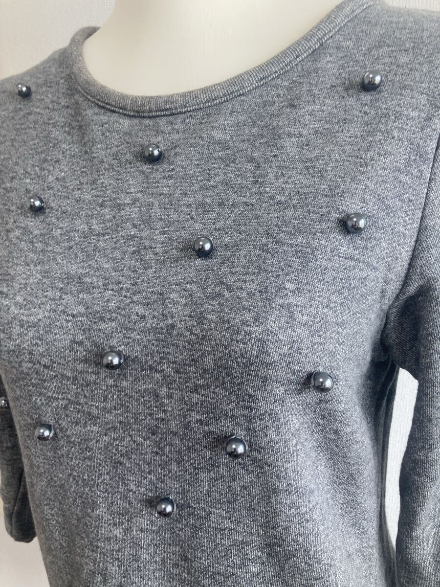 BURBERRY BLUE LABEL バーバリー ブルーレーベル ワンピース 長袖 グレー クルーネック スウェット ビジュー チュニック M 收藏