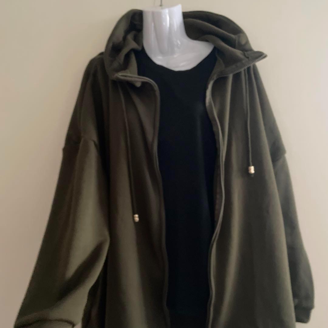 6L ロングパーカー カーキ ゆったり 体型カバー 裏起毛風 レディース 秋冬 長袖 お尻すっぽり 大きいサイズ 收藏