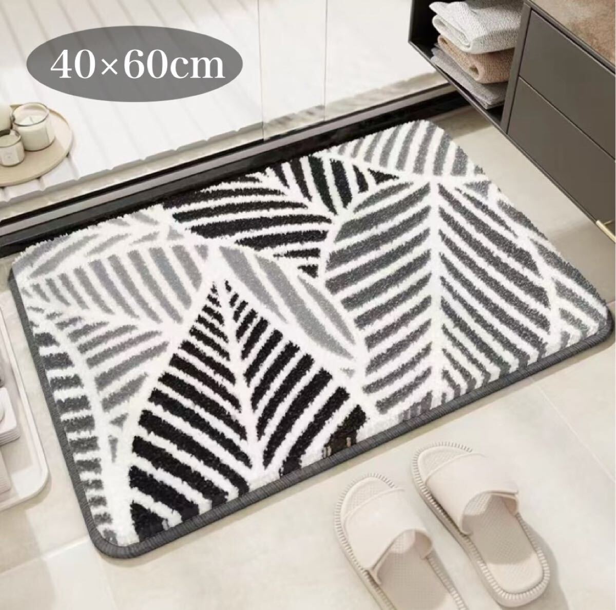バスマット 葉っぱ柄 トイレマット 玄関マット リーフマット 黒 白 モノクロ 吸水 滑り止め キッチン トイレマット ラグ インテリア 收藏