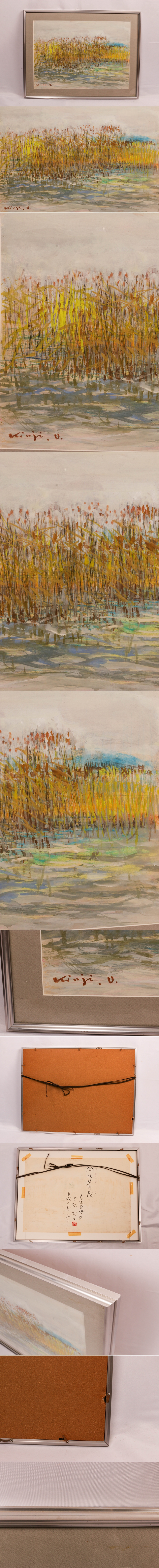 【SAG】上原欽二 『湖北葦茂る』水彩画 紙本 肉筆 直筆サイン 落款 額装 本物保証 收藏