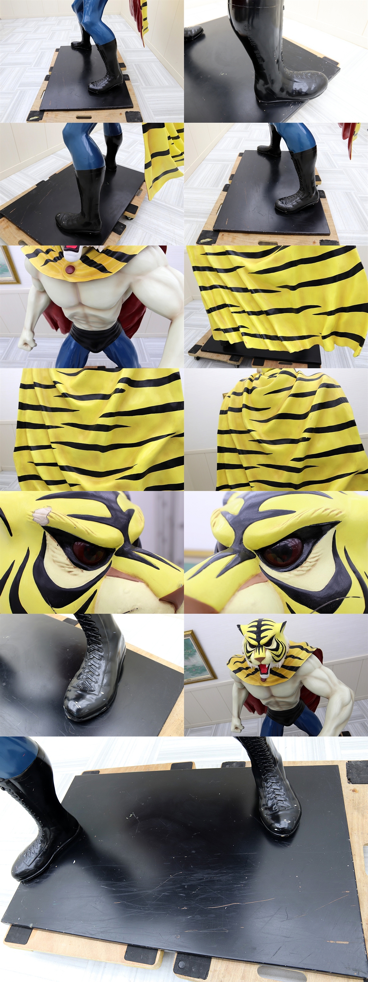 | ★ご覧いただき誠にありがとうございます★ ■サイズ:約-横幅-117×奥行-76×高さ-183cm+台 ●激レア!等身大 タイガーマスク フィギュアの出品です!製作経緯などは不明ですが、相当古いお品だと思われます。 経年による、割れ、スレ、キズ等ございます。割れの部分は赤ペン(目印)で写真撮影をしております。細かくチェックをしておりますが100%ではありません。見落としがあるかもしれません。 土台は鉄です。かなりの重量があり2名で持ち上げたりは不可能でした。マスク・マントは取り外しが出来るようですが破損等が怖くてやっていません。 左右のブーツ部分に「講談社・東映動画・梶原一騎・辻なおき・ATS」と刻印がございます。素材はFRP強化プラスチック製と聞いておりますが詳しくは不明とさせていただきます。 今もなお、絶大な人気を誇る「タイガーマスク」みなさんご存じかと思いますが、実際のプロレスでも人気絶頂でした。現役のプロレスラーの方にもリスペクトされています。匿名「伊達直人」は毎年、養護施設へランドセルや現金を寄付・寄贈等がニュースになります。 人気が衰える事はないタイガーマスク!個人のコレクションは元より、企業様、施設等、人目に付く場所等、様々な場面で展示して頂きたいと思います。インパクトは計り知れません!大変貴重で、滅多に出て来ないお品となります!この機会に、ご検討宜しくお願い致します!! ※発送は、家財宅急便では受けてもらえない為、美術品輸送を手配いたします。送料はその都度見積となりますのでお気軽にお問合せ下さい。 ●あとはすべて写真にてご審査願います。写真には写りきらない、よごれやダメージ、詳細部分の、記載ミスなどがもしあっても、その旨のクレームはご勘弁下さい。上記内容をご理解頂き、ノークレーム・ノーリターンでお願いいたしいます。 |
