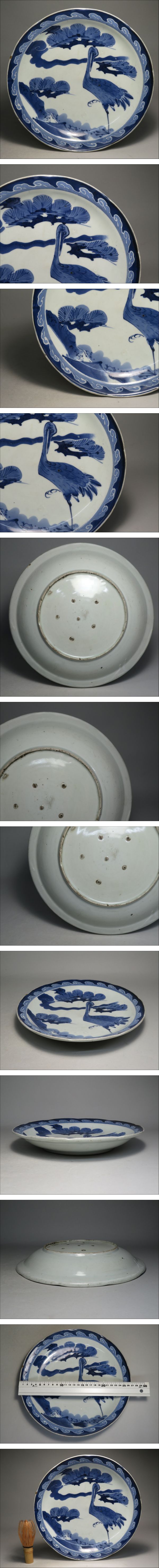 | 「コレクター所蔵品」◆江戸期 古伊万里 染付 立鷺に松図大皿 ◆検:伊万里焼/有田焼/鍋島焼 | ||