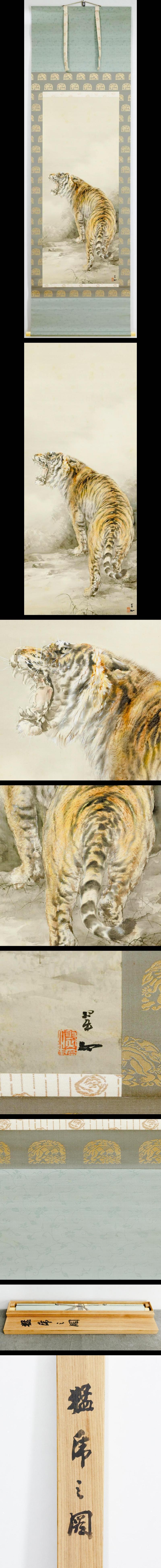 【真作】【WISH】大橋翠石「猛乕之圖」日本画 掛軸 絹本 共箱 ◆猛虎名幅 〇虎画大家 海外高評価 師:渡辺小華 #25040069 收藏