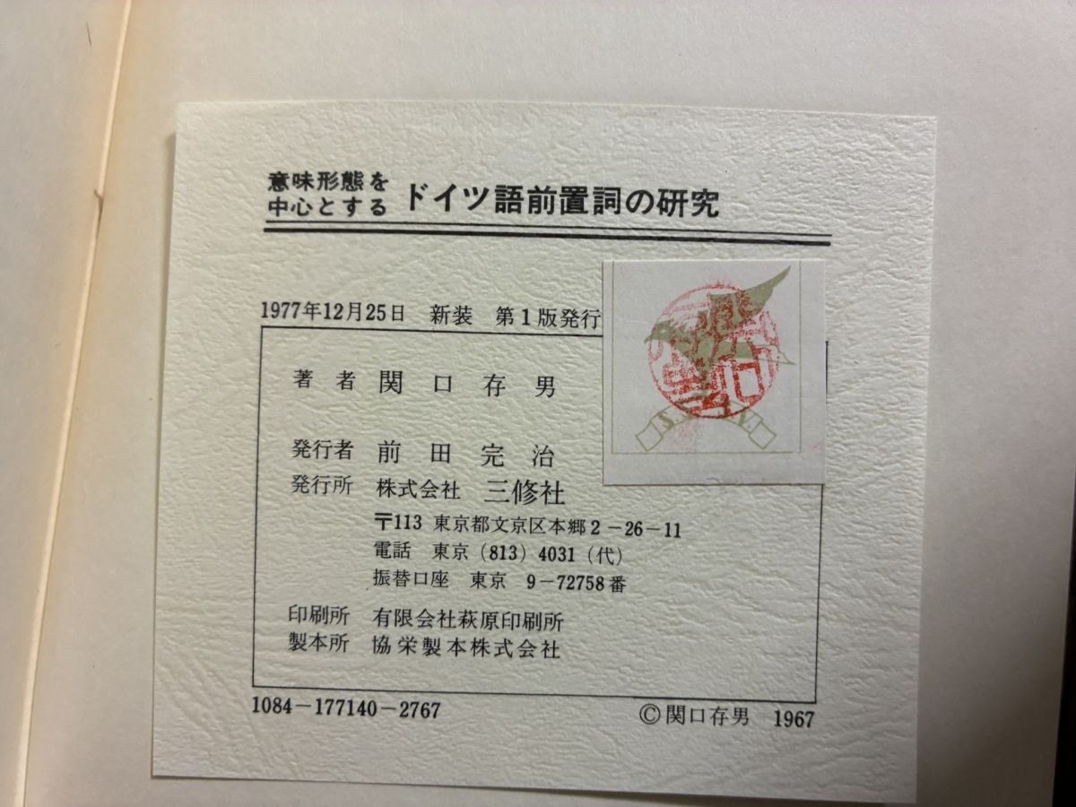 1977年 関口存男 『意味形態を中心とするドイツ語前置詞の研究』 Deutsche Prpositionen 收藏