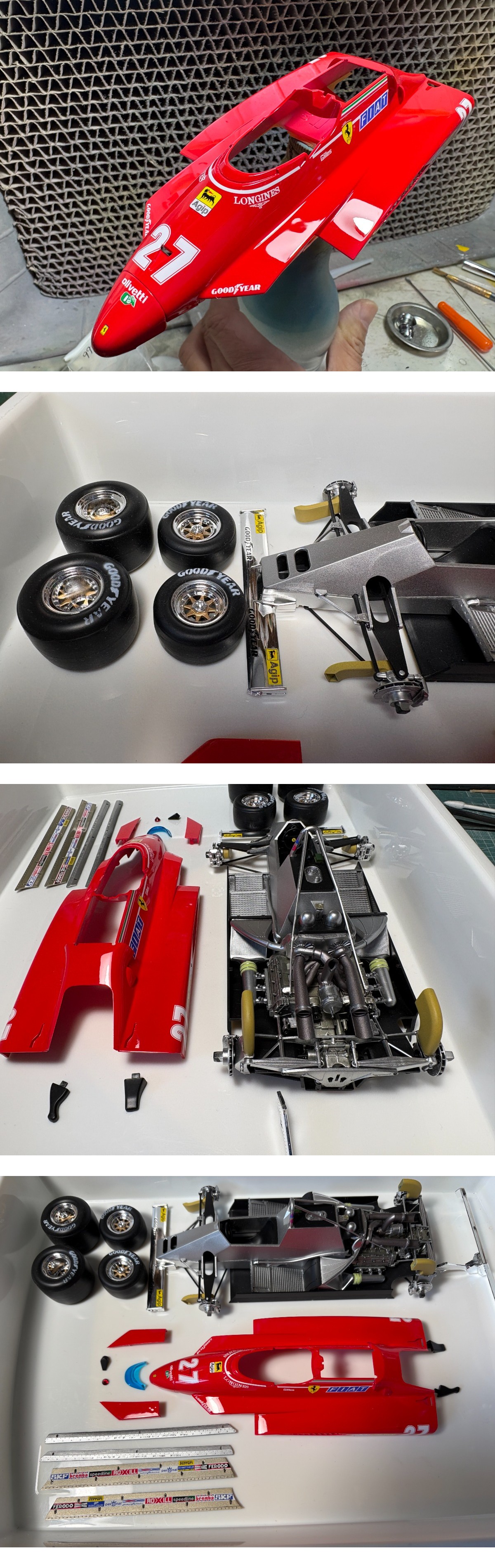 | ◆商品説明◆ | フジミ1/20 フェラーリ 126C2 ロングビーチGP完成品 ★フジミ製 1/20 フェラーリ F1 126C2 ロングビーチGP仕様完成品です。 ★レギュレーション違反で失格となった、特徴的なリアウイングを再現したものです。 ★ボディーカウルおよび各パーツは実車に近づけるべく、サンディングを繰り返し、整形しています。 ★エアブラシでレッド塗装、デカール貼り付け後、2液混合式ウレタンクリアーコート仕上げ。 ★研出し(ペーパー1000~2000~3000)後→3Mコンパウンド3種類→ハセガワセラミックコンパウンド。 非常に綺麗なツヤが出ております。 ★カウルは元々フィッティングが悪いため接着し、固定してあります。 ★タイヤレターは実車に近づけるべく、吹き付け塗装で再現しています。 | |