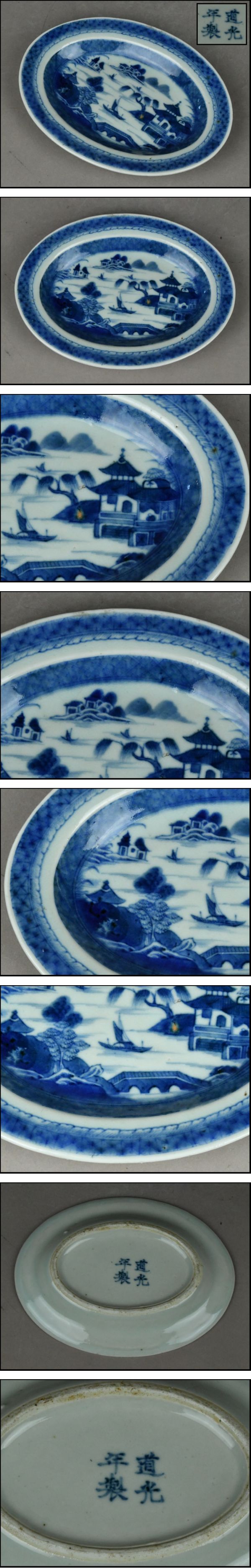 【ACT】中国美術 唐物【道光年製】古染付 山水風景図 楕円形 皿 古美術品 幅17.8cm A8-0116-18 收藏