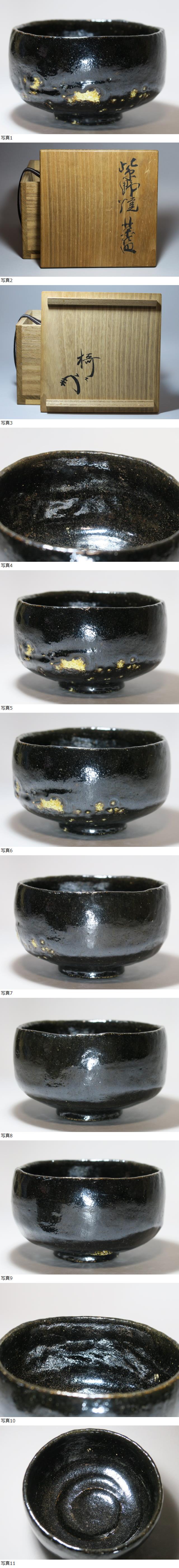 ◆紫野焼創始者 鶴亭 黒楽茶碗【紫ノ】在款 薮内流十二代猗々斎書附 松村長以箱 茶道具 江戸後期 時代希少作 收藏