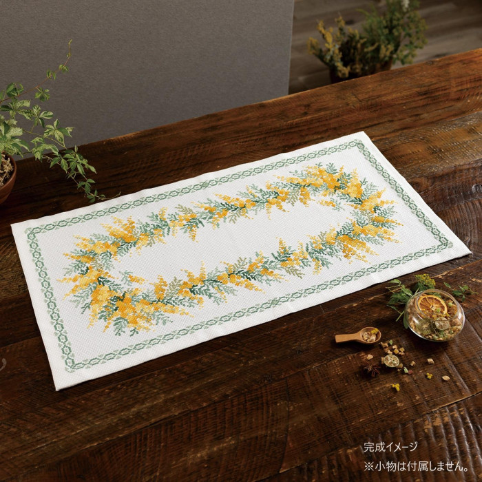 オノエ・メグミ ミモザコレクション クロスステッチ刺しゅうキット テーブルセンター ミモザのリース 1207 收藏