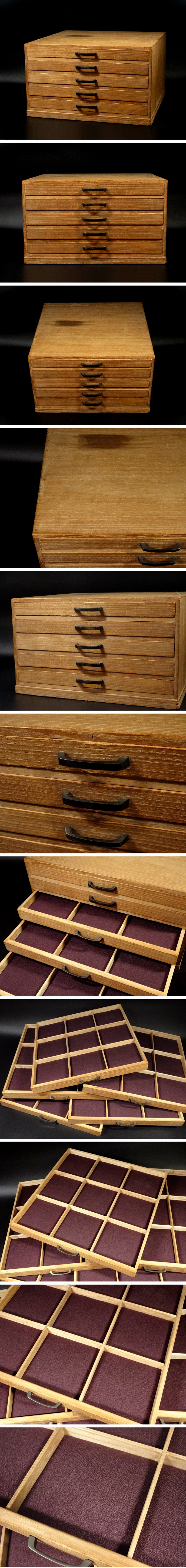 敬逢 秀逸 刀装具箱 桐無垢 柾目材造 上手 鐔箪笥 鍔箪笥 5段引き出し 刀装具 45点収納可 極上の作 武具刀箱小箪笥 收藏