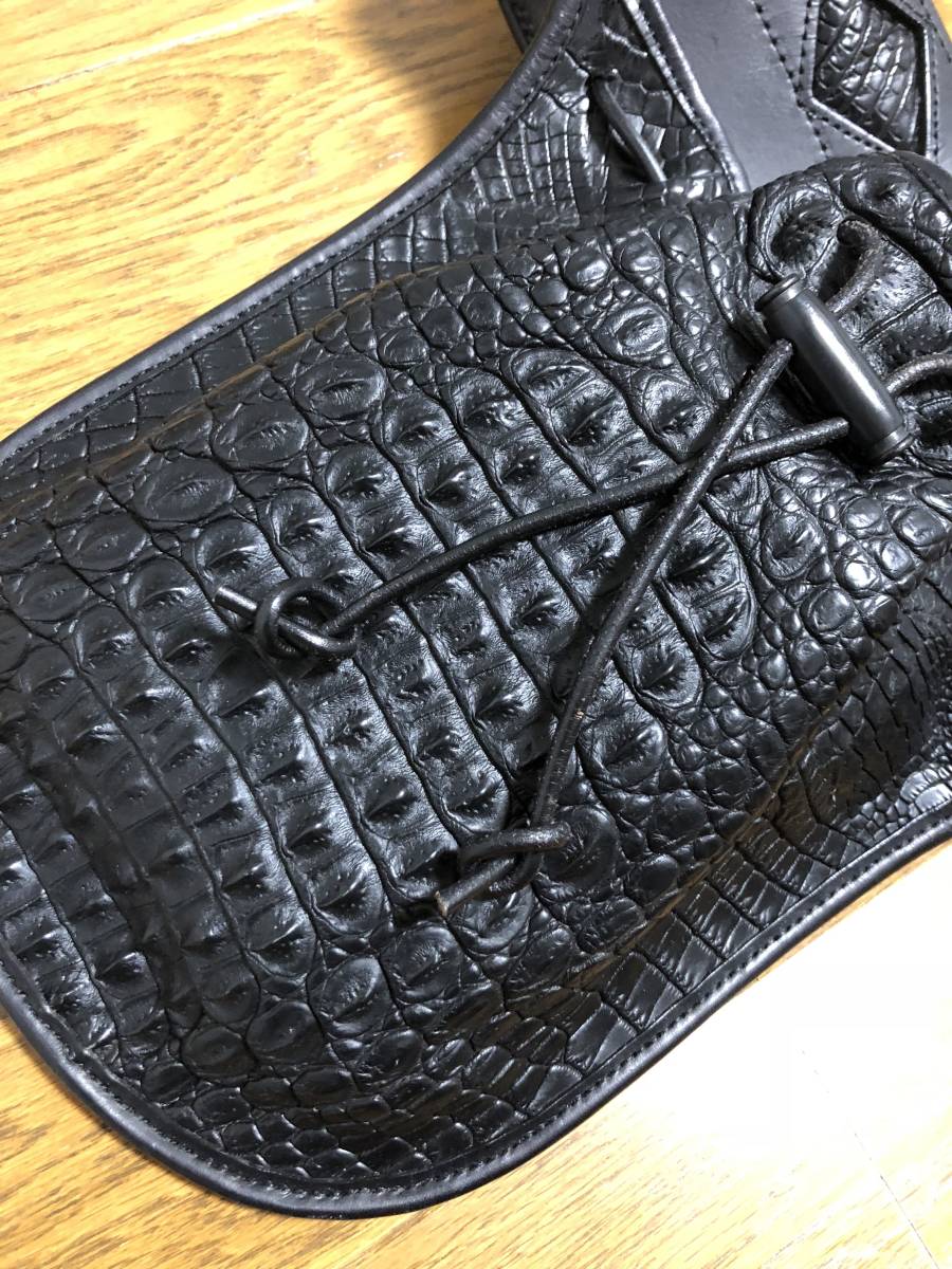 美品☆[BACKLASH] クロコレザーウエストバッグ ウエストポーチ ダブルピンベルト ブラック アリゲーター スタースタッズ バックラッシュ 收藏