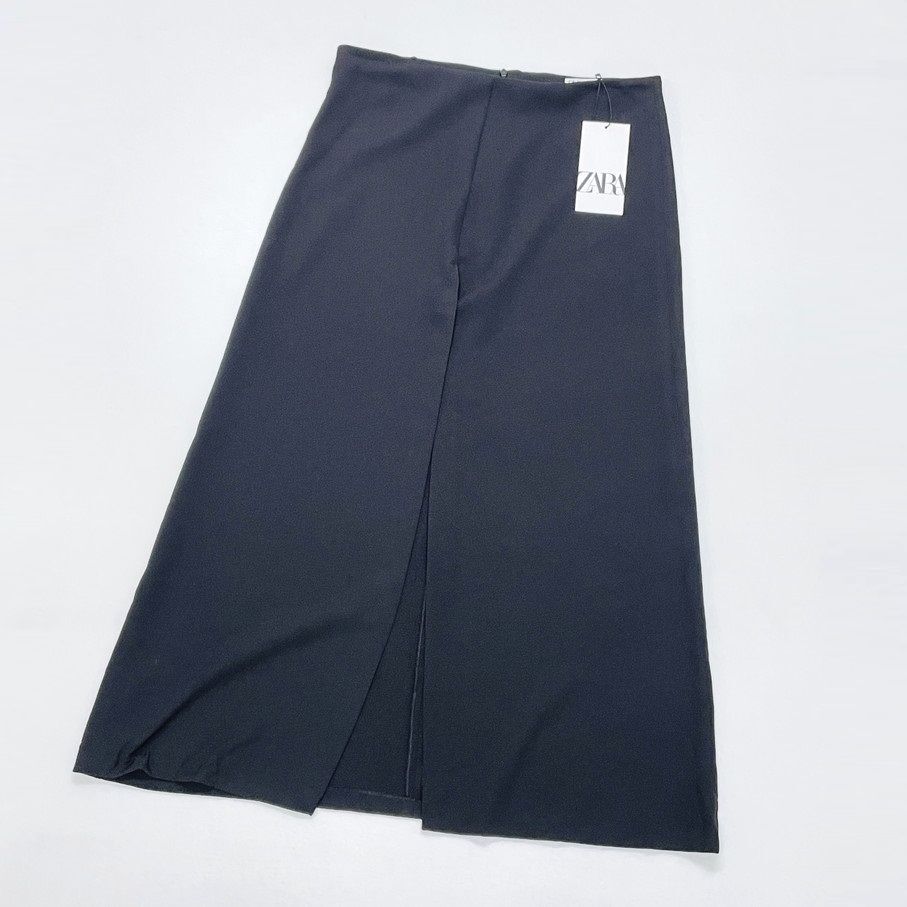 /M/ ZARA ブラック ロングスカート レディース タグ カジュアル スリット 通勤 フェミニン 大人可愛い ベルトなし デイリー ザラ 收藏