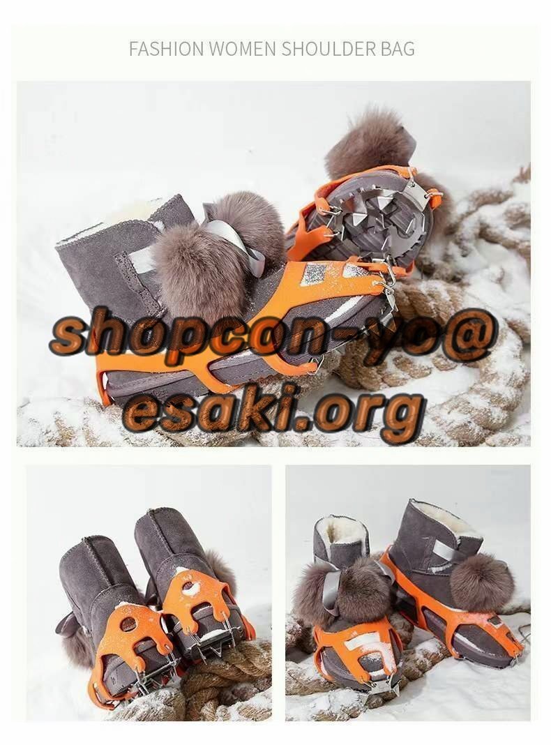 サイズ:フリー 22.5cm~27.5cmまで兼用 爪は軽量でさびにくいステンレス鋼を採用しています。 強力な18本爪で、雪面や滑りやすい山の斜面に対してしっかり食い込ませることができ、安定感が増します。
