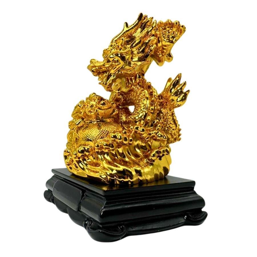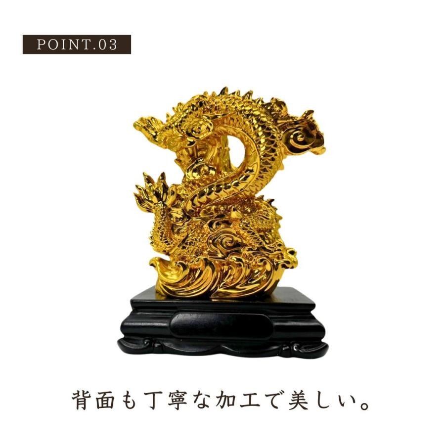風水 黄金龍 黒台座 ゴールドドラゴン 置物 干支 辰 福 龍 竜 十二支 縁起物 おしゃれ かっこいい 趣 ギフト インテリア オブジェ 收藏