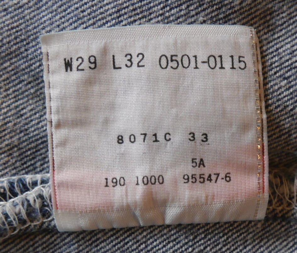 内側白タグの記載が190 1000なので2000年10月にメキシコの工場で生産された501と確認できます。