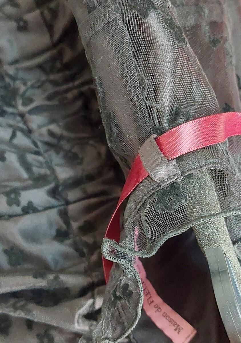 訳アリ ボウタイドレス ロングワンピース 黒 長袖 メゾンドフルールプチローブ 花柄 レース М フォーマル パーティー 赤リボン 收藏