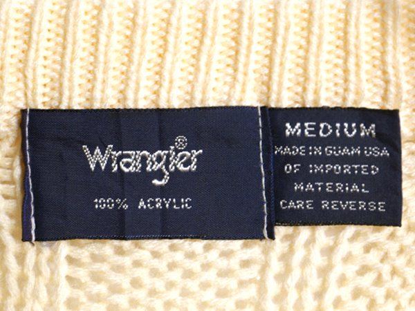 80s ラングラー フィッシャーマン アクリル ニット セーター メンズ M / 古着 80年代 ヴィンテージ Wrangler アラン ケーブル ローゲージ 收藏