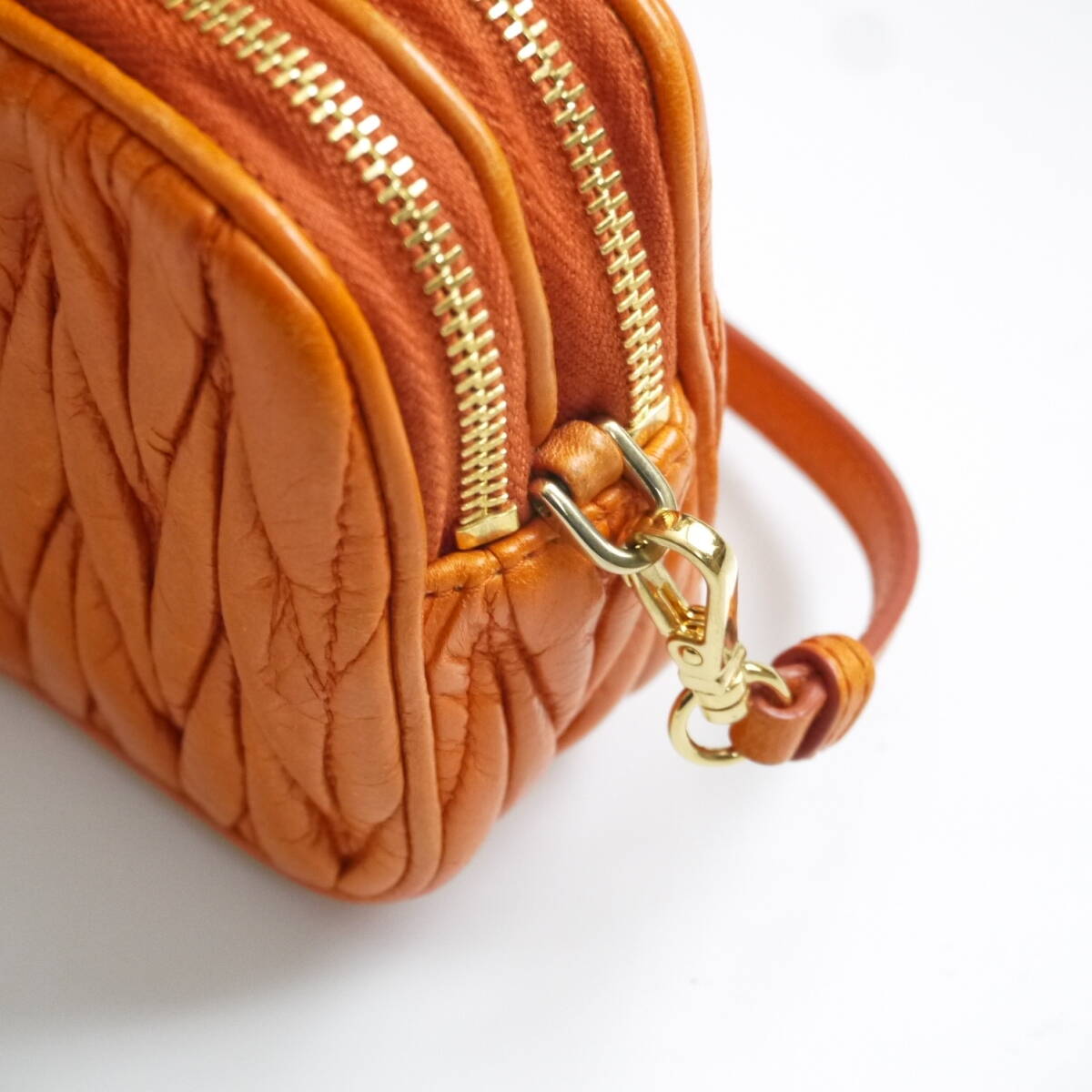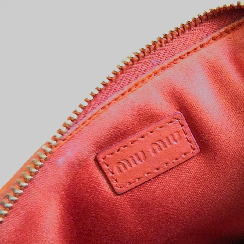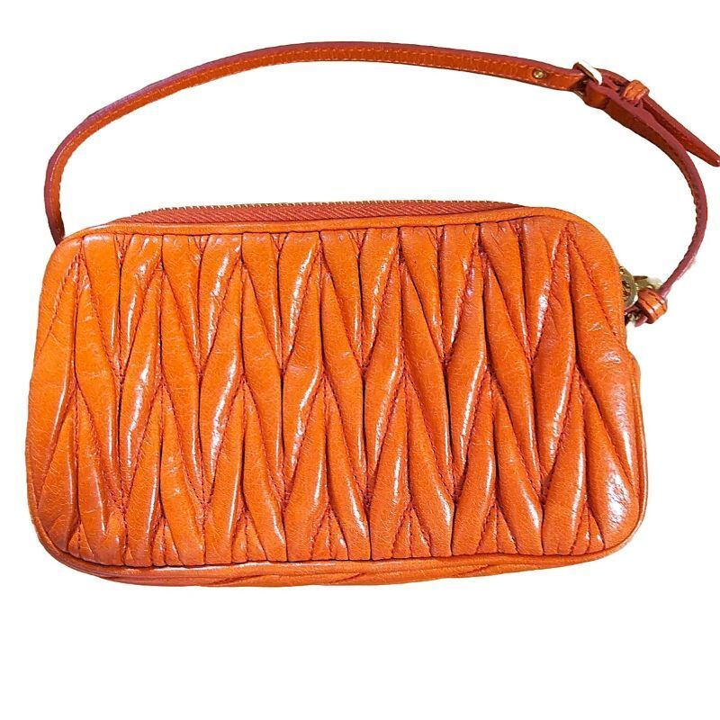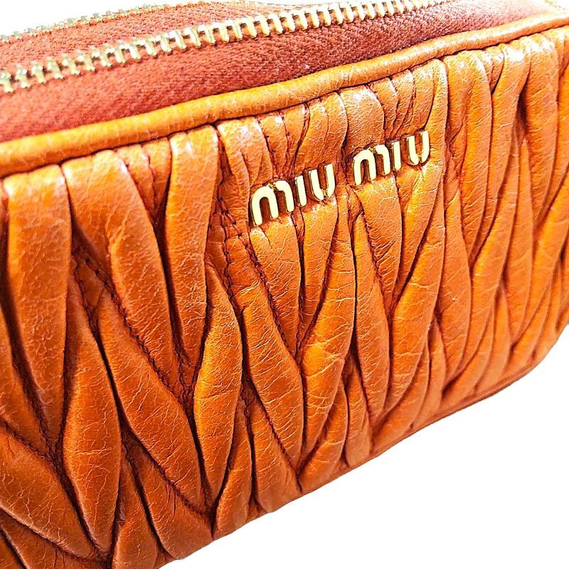 ¥ 美品 ¥ 激レア♪■ miumiu ■ ミュウミュウ■ マテラッセ 本革 レザー製■ ダブルファスナー式■ ミニバッグ ポーチ 小物入れ■ オレンジ 收藏