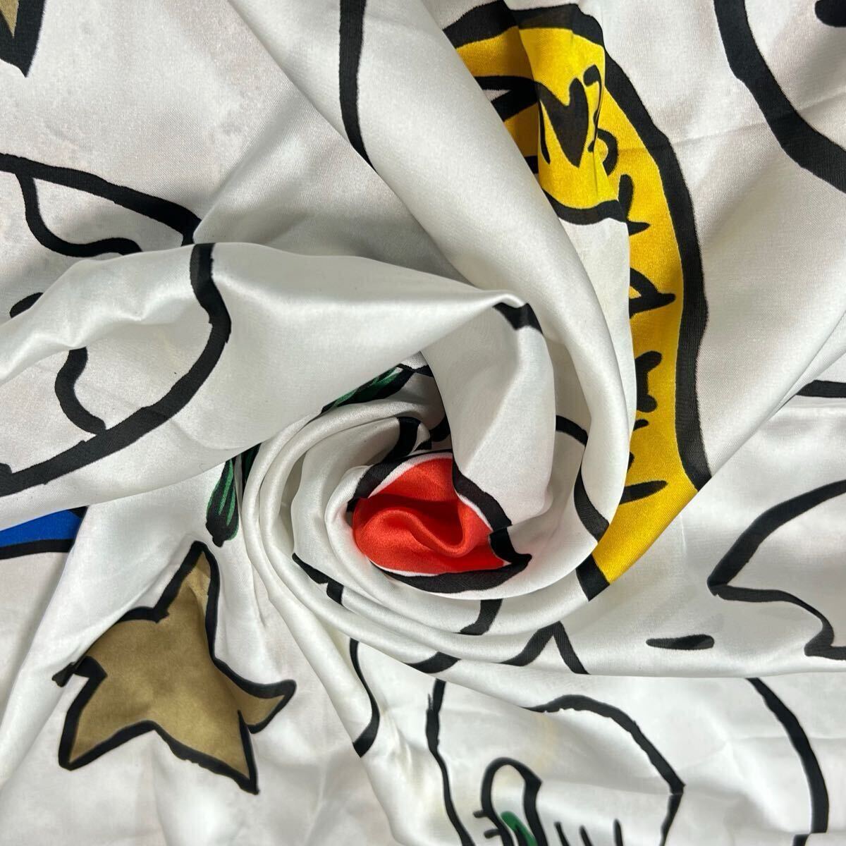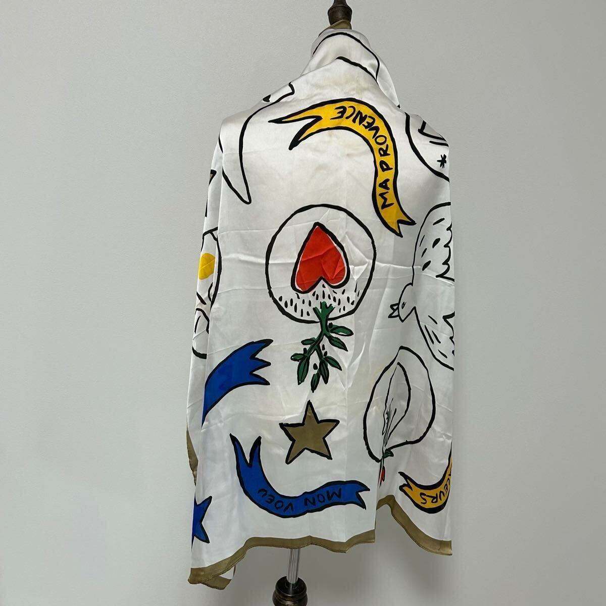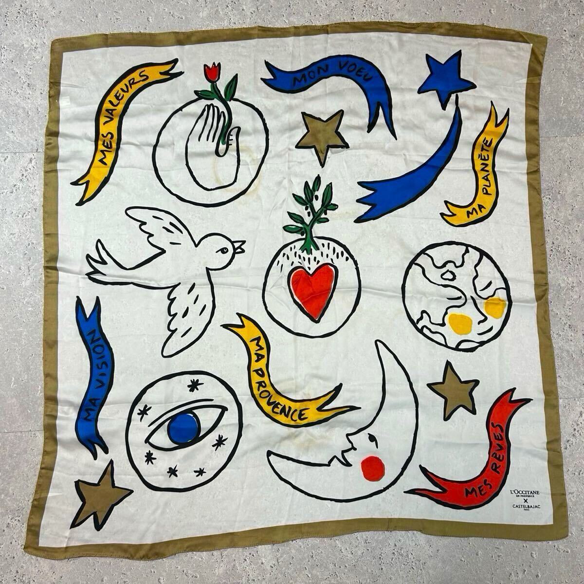 カステルバジャック 大判スカーフ 白スカーフ 大判サイズ LOCCITANE CASTELBAJAC ゴールド ホワイト マルチカラー アート柄 611FH 收藏
