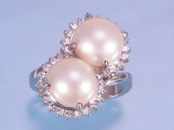パール11ミリx2 リング ダイヤ0.71ct プラチナ ファッション 19号 收藏