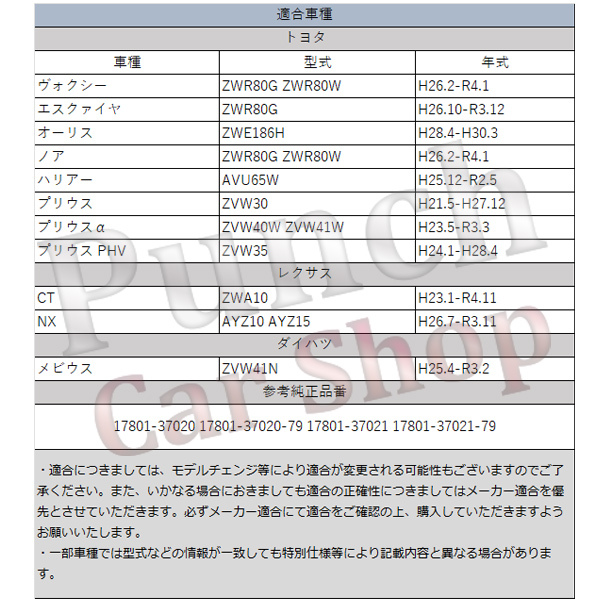 【適合確認のお願い】 商品ページに適合車種や型式を掲載しておりますが、年式やグレード等によっても適合が変わる場合がございます。 ご注文前に必ず、車体情報『初度登録年月・車台番号・型式・型式指定番号・類別区分番号』をお教えください。こちらで適合しているかをお調べいたします。 ★ご注文手続きページの『その他設定』欄に必要情報のご記入をお願い致します。商品ページに記載されている部品の『適合番号』『純正品番』にて『確認済み』とご記載ください。 適合確認の結果適合しなかった場合や、適合商品の金額が変わる場合、適合商品の在庫がない場合もございますので、必ず適合することが確定してからご注文をお願いいたします。 適合確認のご依頼がなく、商品お届け後に適合が合わなくても返品・交換できかねますのでご了承ください。 |