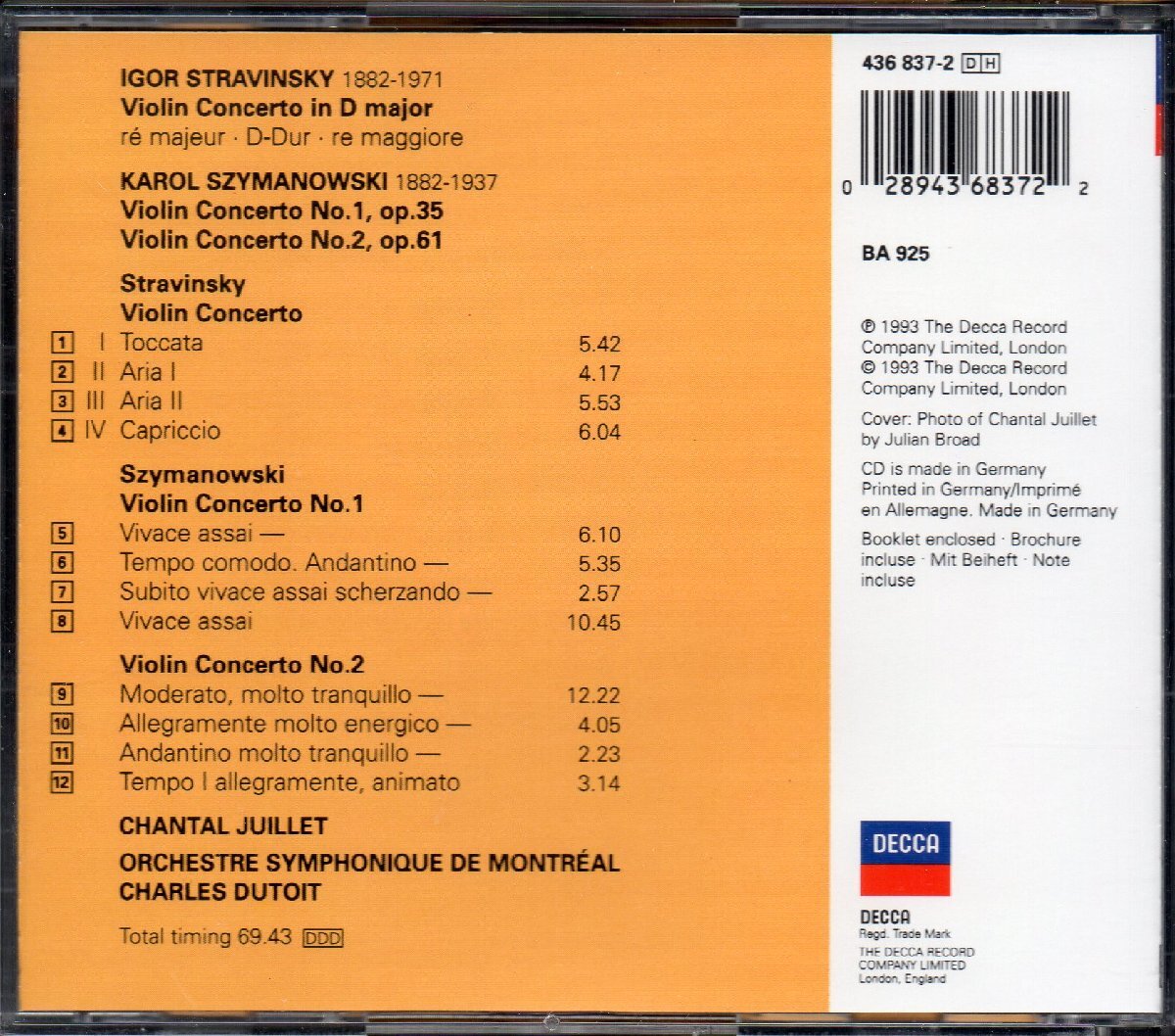 シマノフスキ (2曲),ストラヴィンスキー:vn協奏曲 ジュイエ(vn) デュトワ=OSM (DECCA) 收藏
