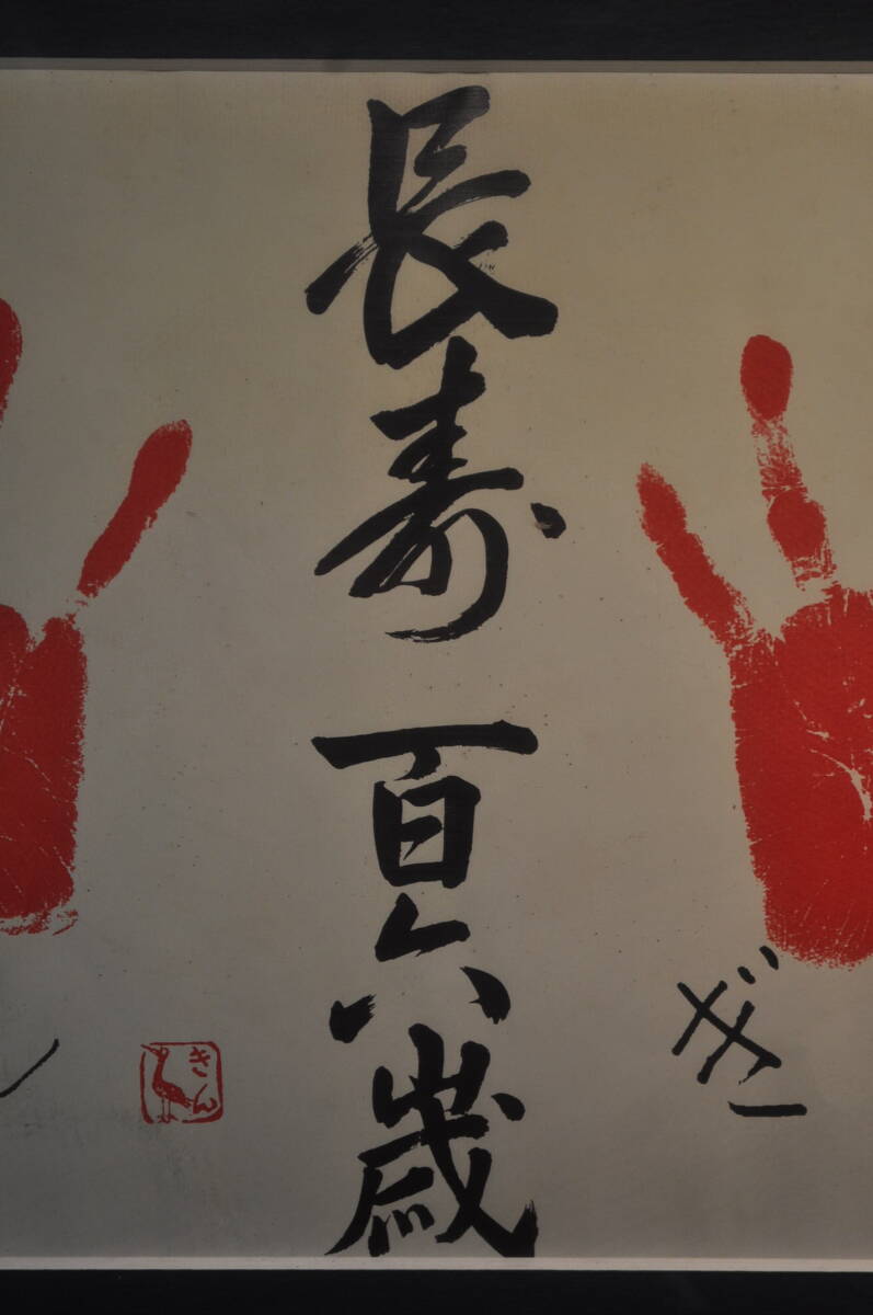 本物 直筆 長寿 きんさん ぎんさん サイン 手形 花押 マット額装 415x530 画面400x290ミリ 收藏