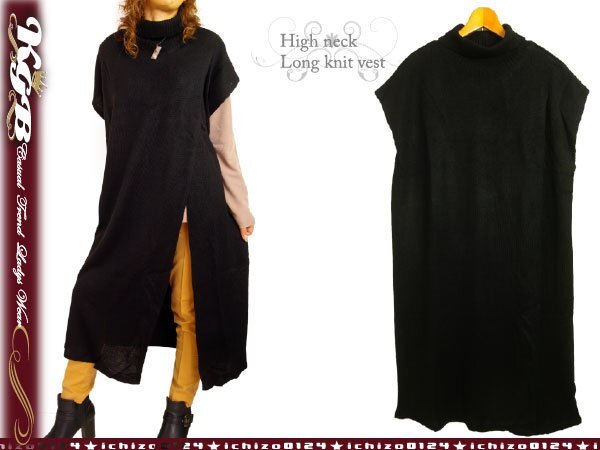 ■LL~3L ブラック ベスト ニット レディース ハイネック ロング丈 新品■