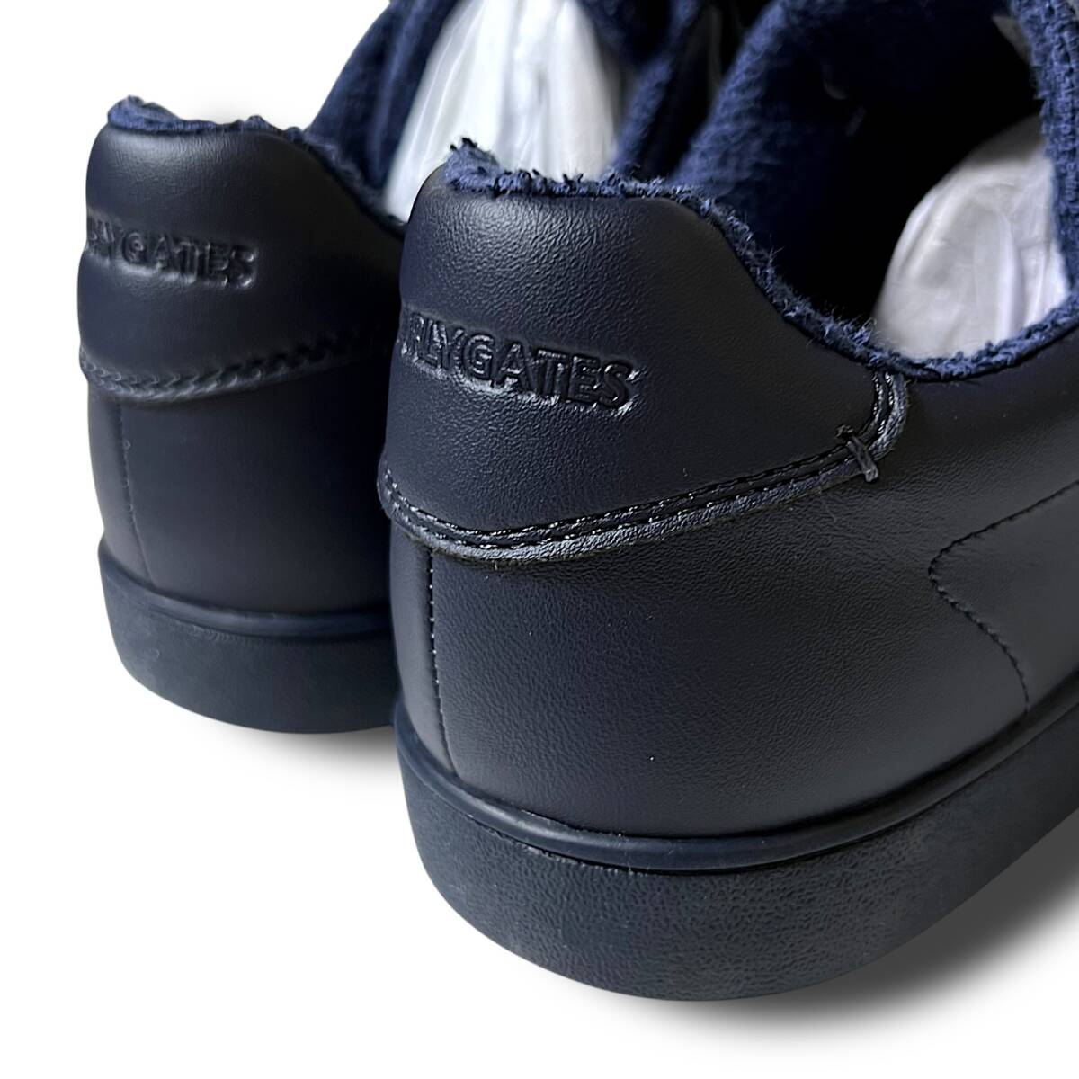 タイトル 新品 PEARLY GATES パーリーゲイツ 定価3.9万 裏側速乾パイル採用 本革 レザー キルトタン ロゴ入り ニコちゃん ローカット スパイクレス ゴルフシューズ メンズ GOLF スポーツ レジャー 普段使い タウンユース カジュアル 120 ネイビー系