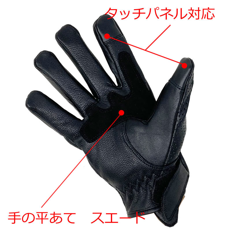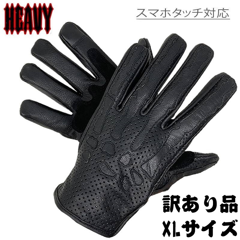 【セール!訳あり品!】HEAVY 山羊革パンチングメッシュグローブ 穴あき ボーン スマホタッチ対応 ブラック サイズ:XL 收藏
