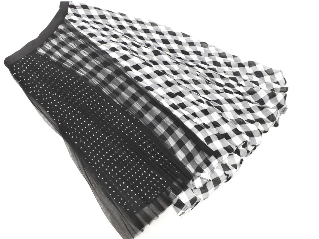 MERCURYDUO マーキュリーデュオ チェック ドット チュール ロング スカート sizeF/黒xグレーx白 ■■ ☆ ffb7 レディース 收藏